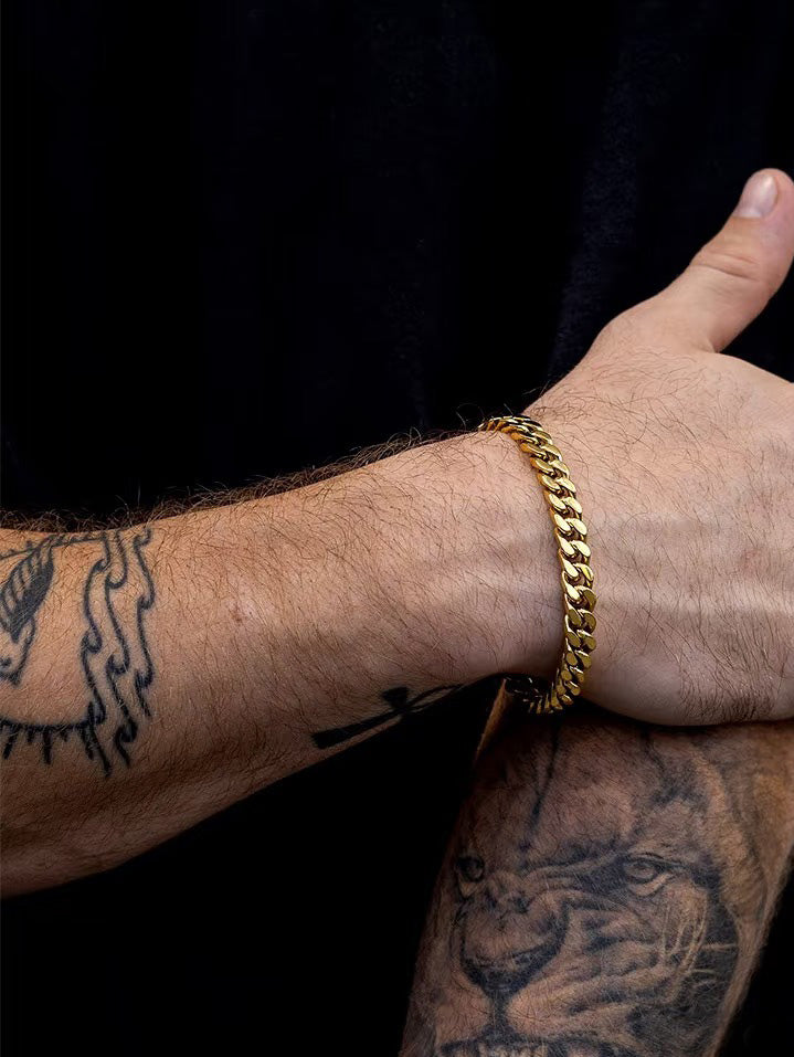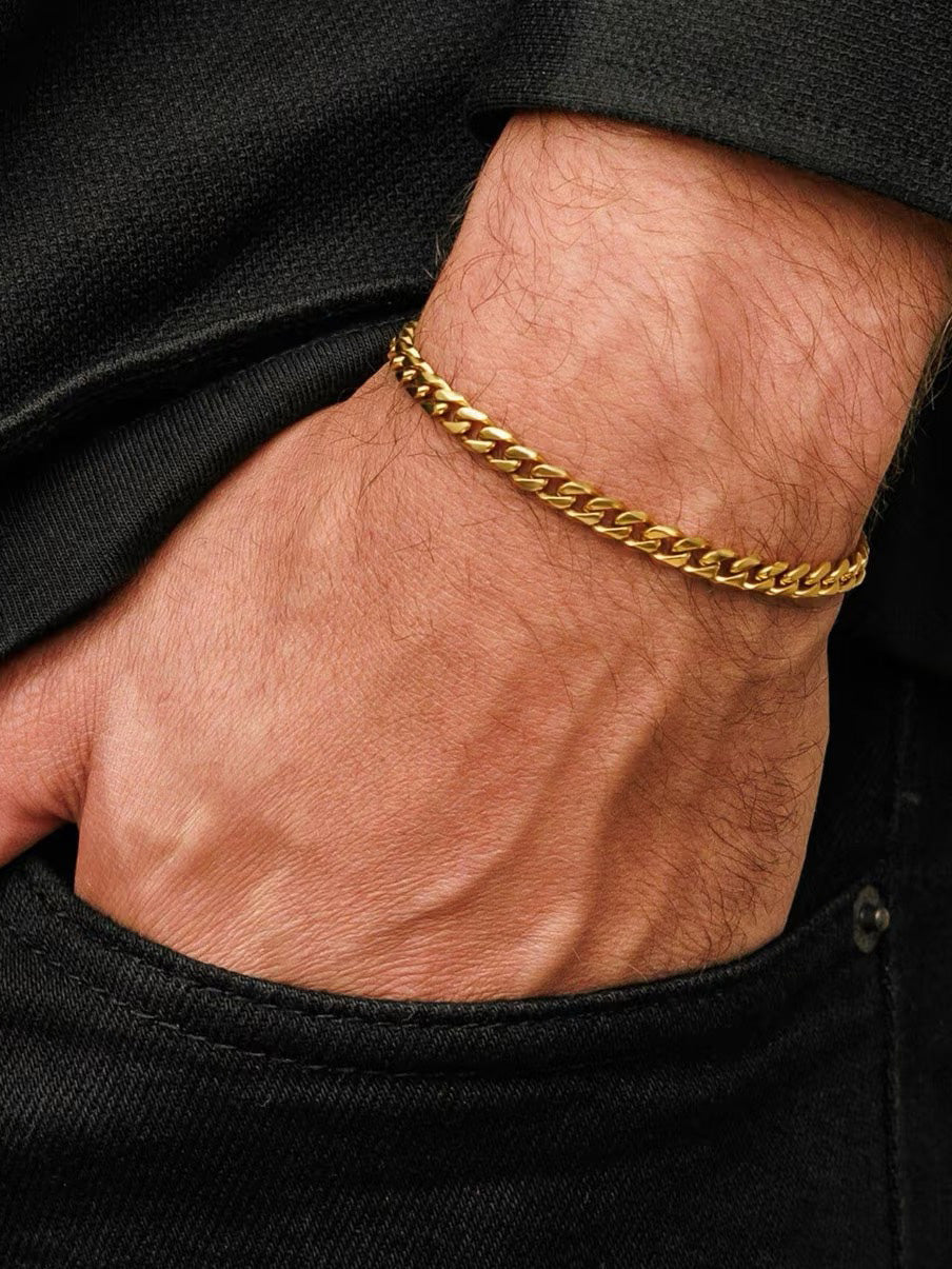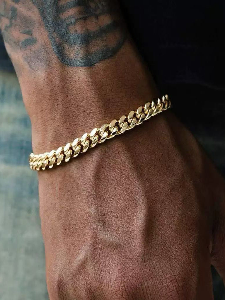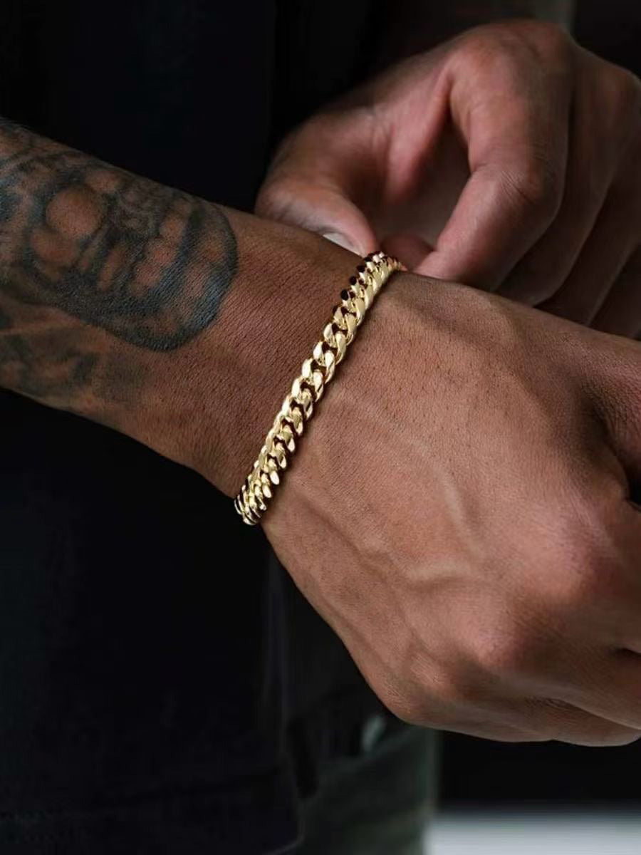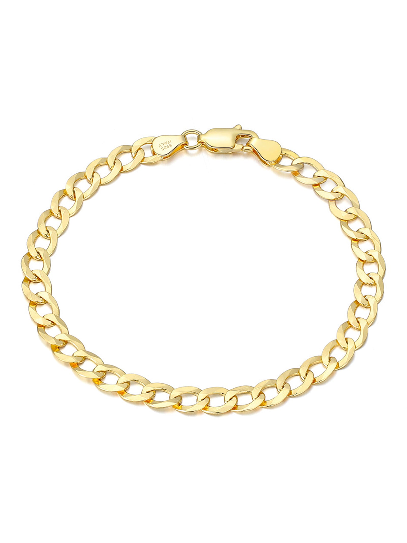 This Cuban Chain Bracelet is crafted from 925 sterling silver and finished in rich 18k gold.