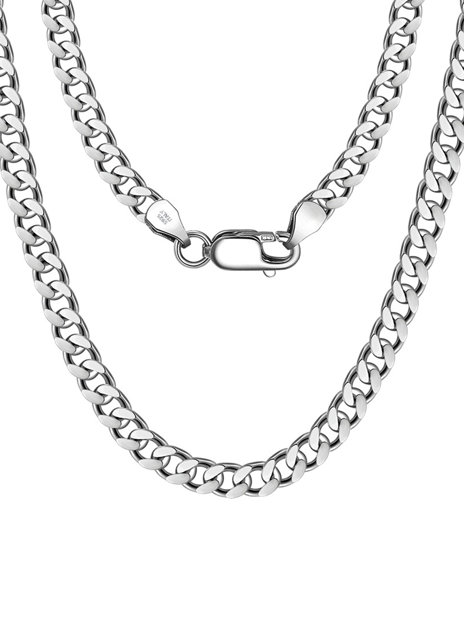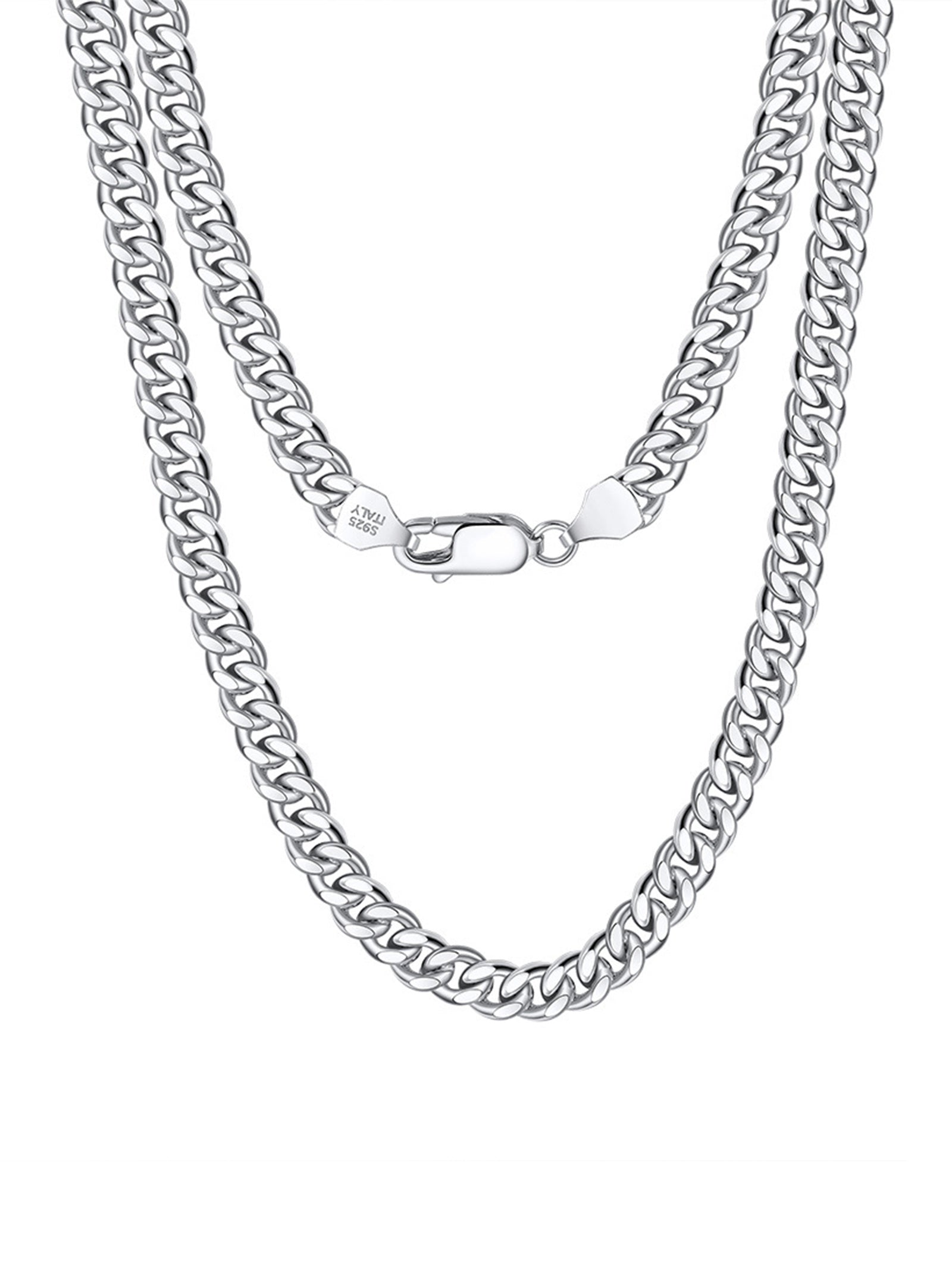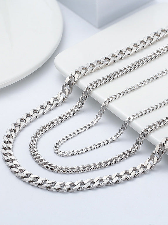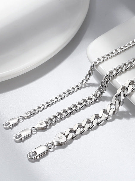 Sterling Silver Cuban Chain Necklace with Rhodium Plating