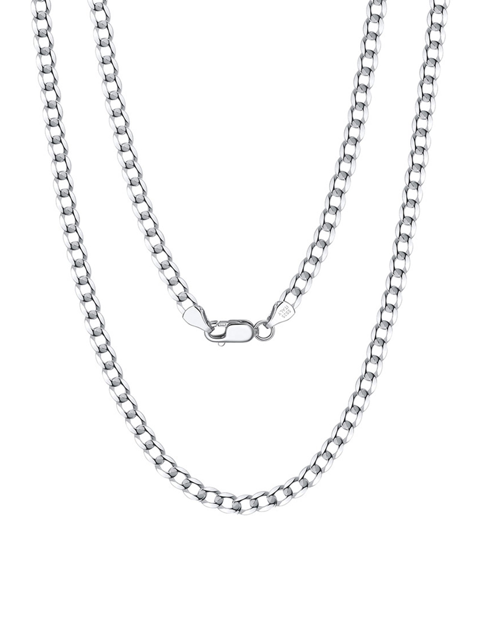 Sterling Silver Curb Chain Necklace with Rhodium Plating