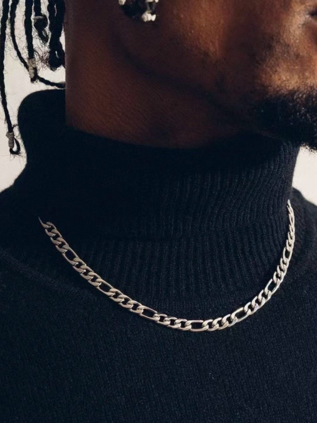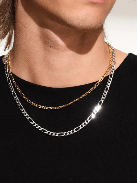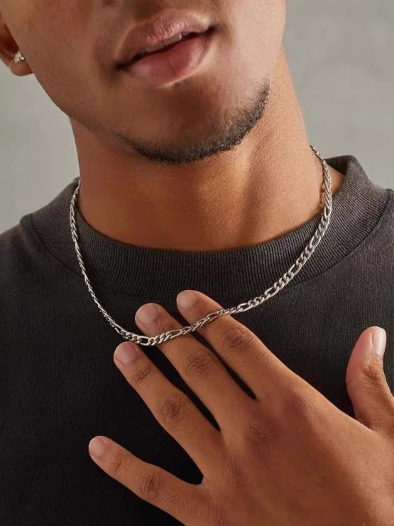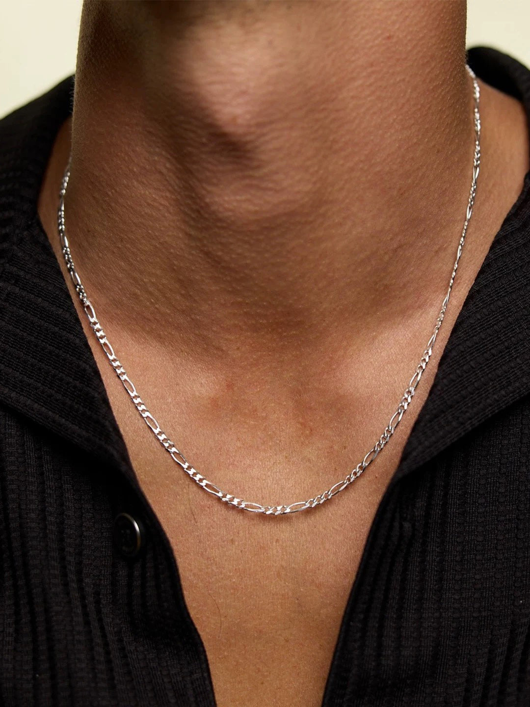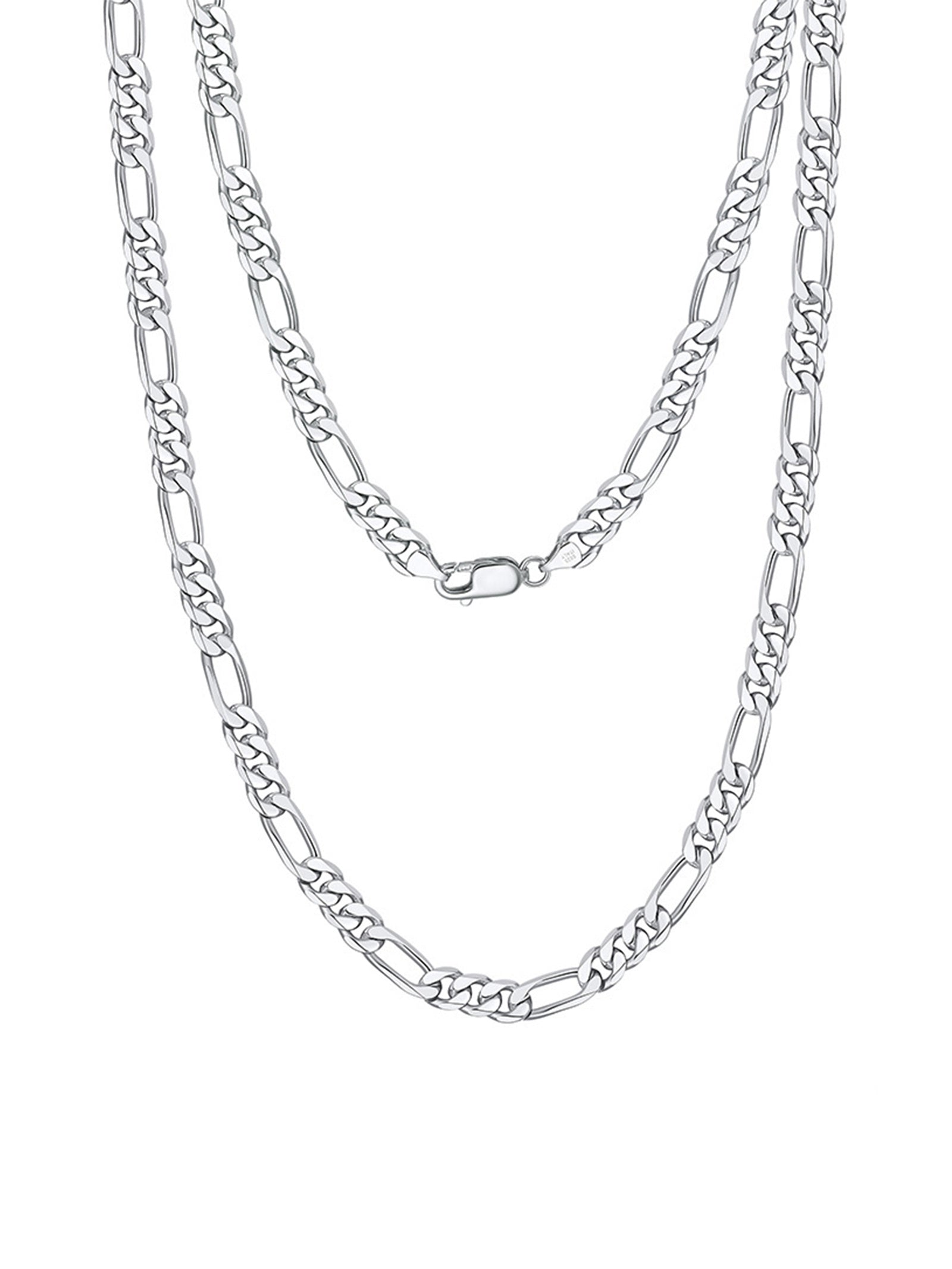 With its distinctive yet versatile design, the Figaro Chain makes a statement without saying a word. The brilliant rhodium plating delivers a sharp, luminous coolness, while the fluidity of the links ensures a comfortable, natural drape. Whether you're dressing up for an event or elevating your everyday look, this necklace adds a touch of modern sophistication.