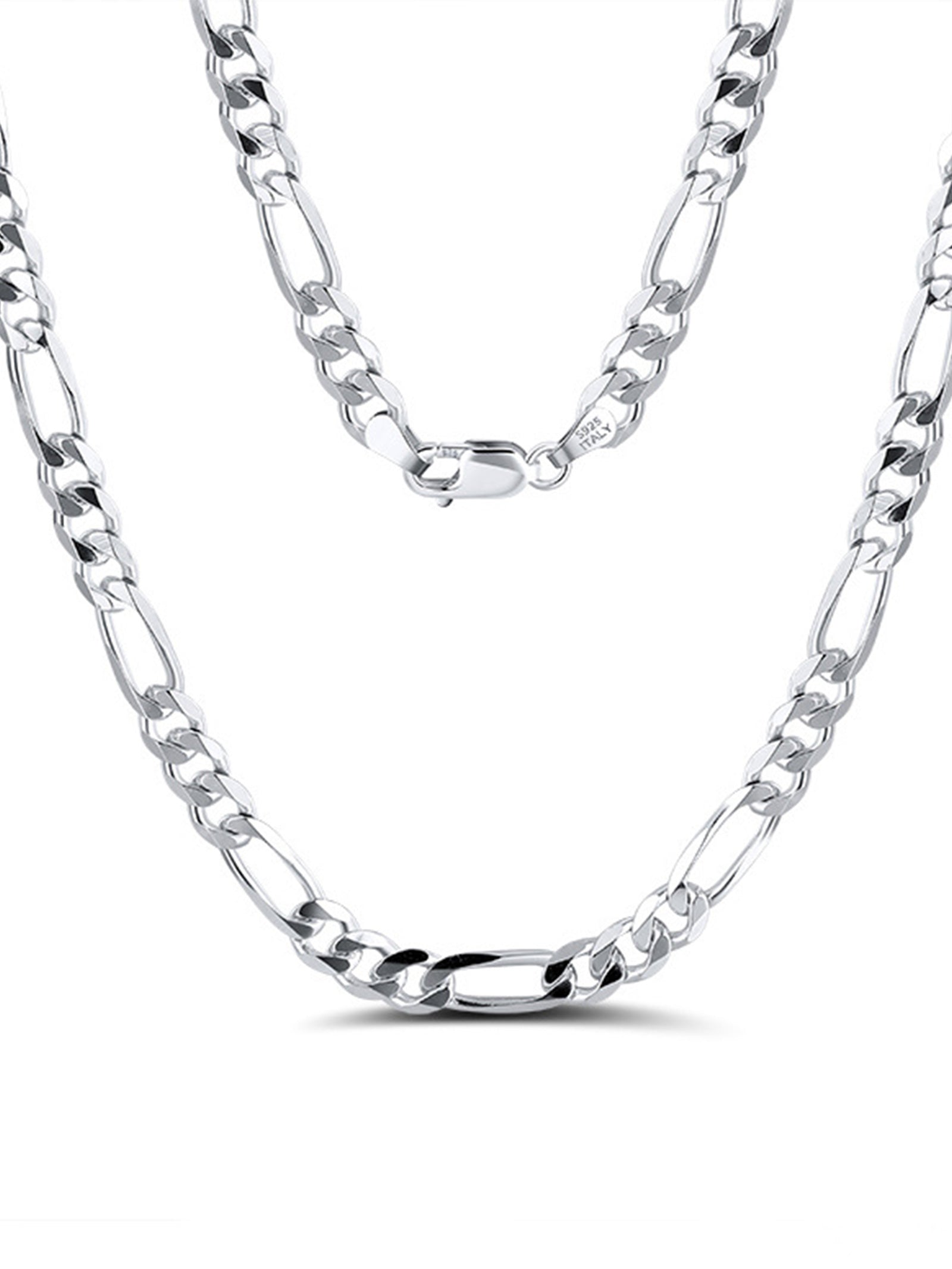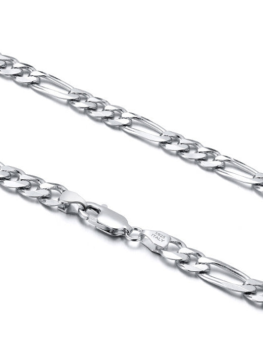This Figaro Chain Necklace is crafted from 925 sterling silver and plated in sleek rhodium, striking the perfect balance between classic appeal and contemporary flair. The varied link sizes create a rhythmic, eye-catching texture that stands out for its artistry and elegance.