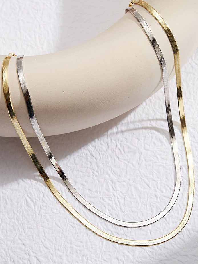 Sterling Silver Herringbone Chain Necklace with 18k Gold Plating