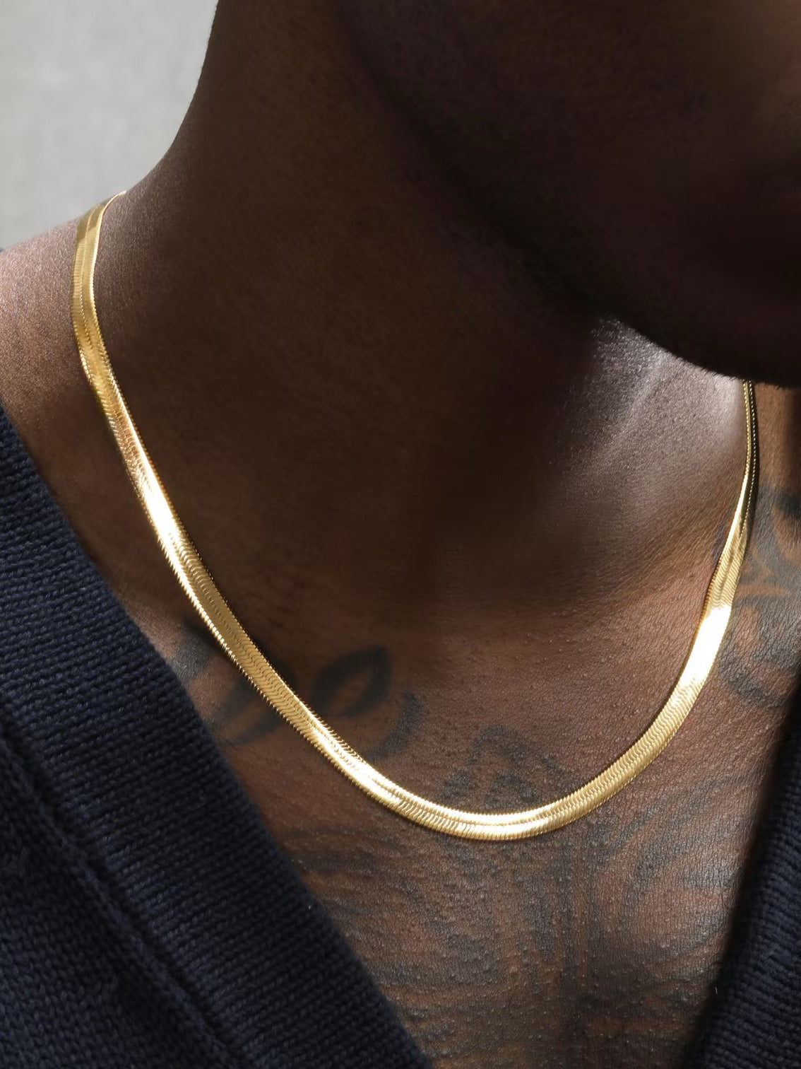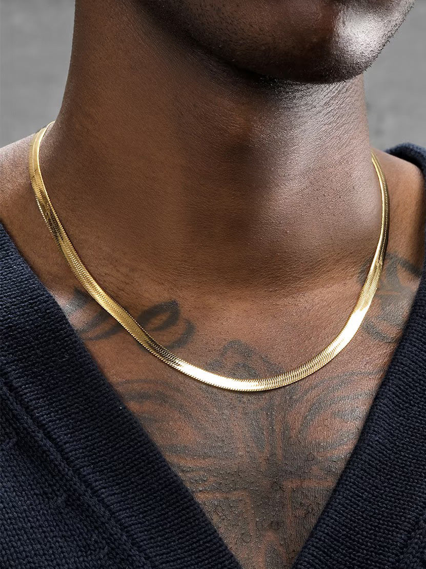 This Herringbone Chain Necklace is crafted from 925 sterling silver and plated in rich 18k gold.