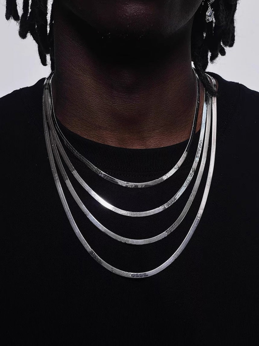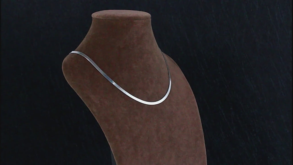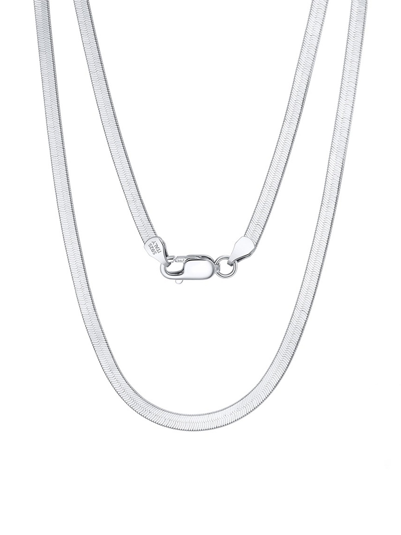 Sterling Silver Herringbone Chain Necklace with Rhodium Plating