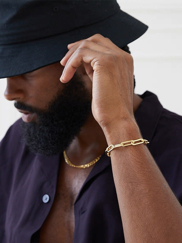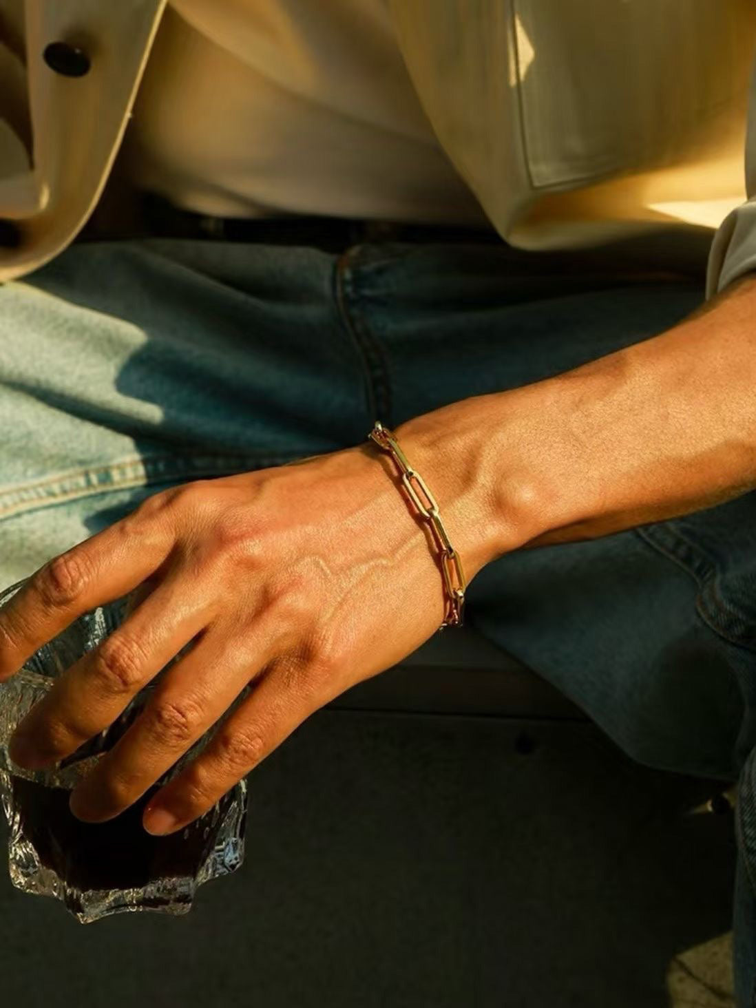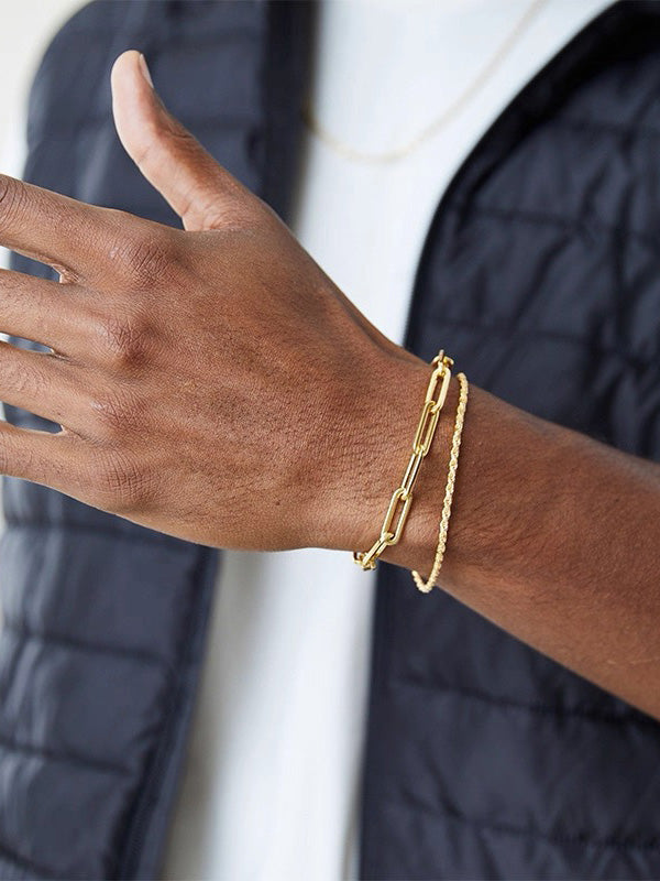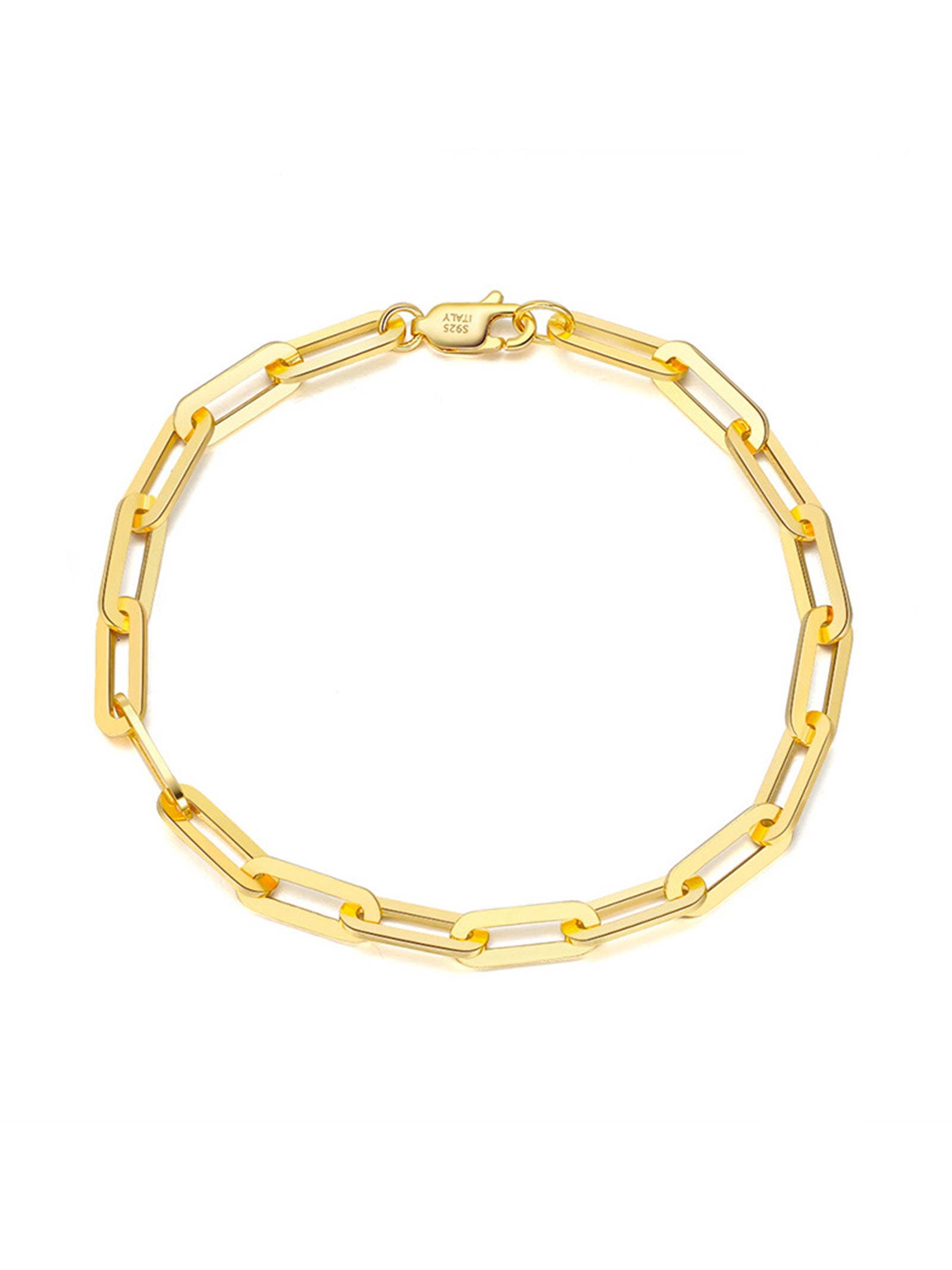 This 4.5mm Paperclip Link Bracelet is crafted from 925 sterling silver and plated in 18k gold, featuring an industrial-inspired design that creates a clean, architectural silhouette.