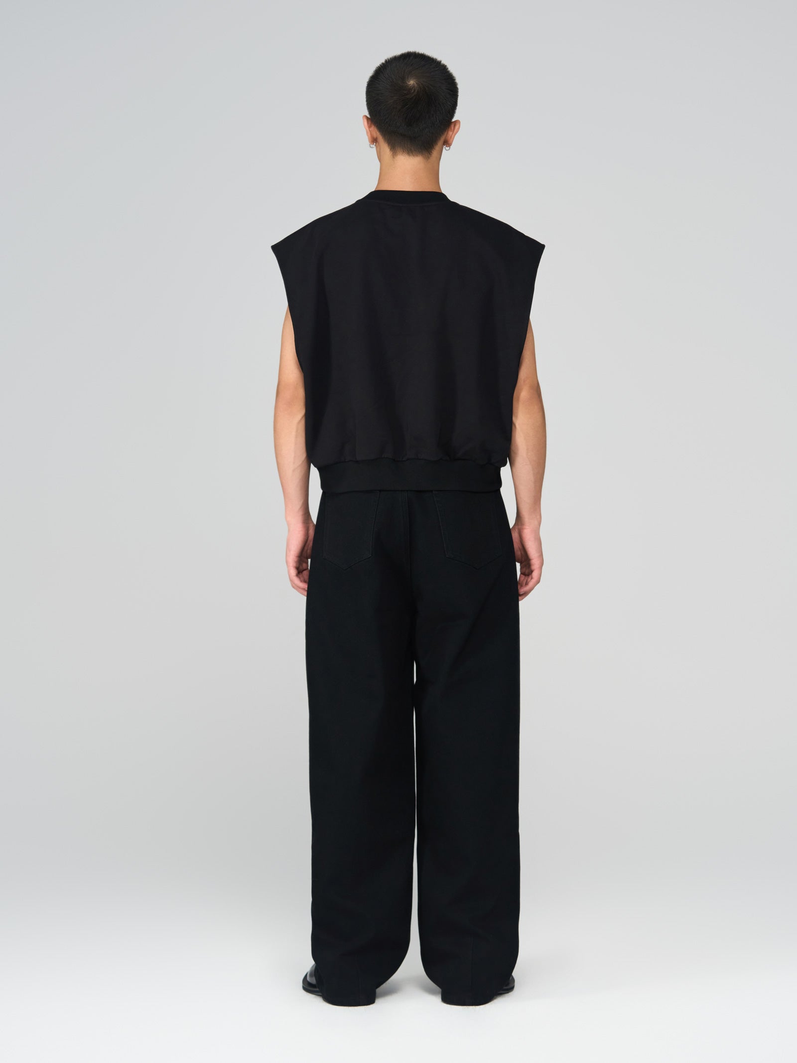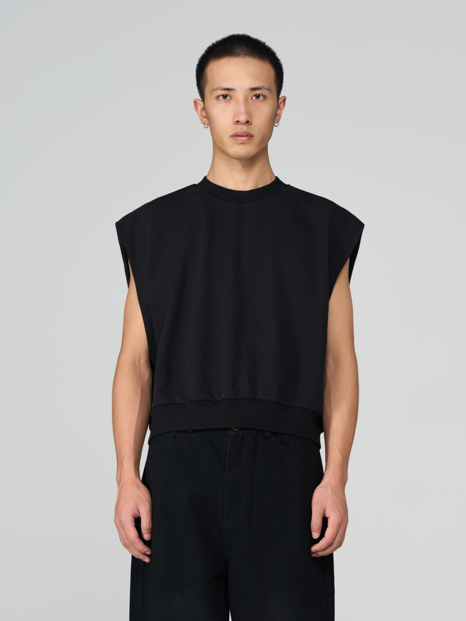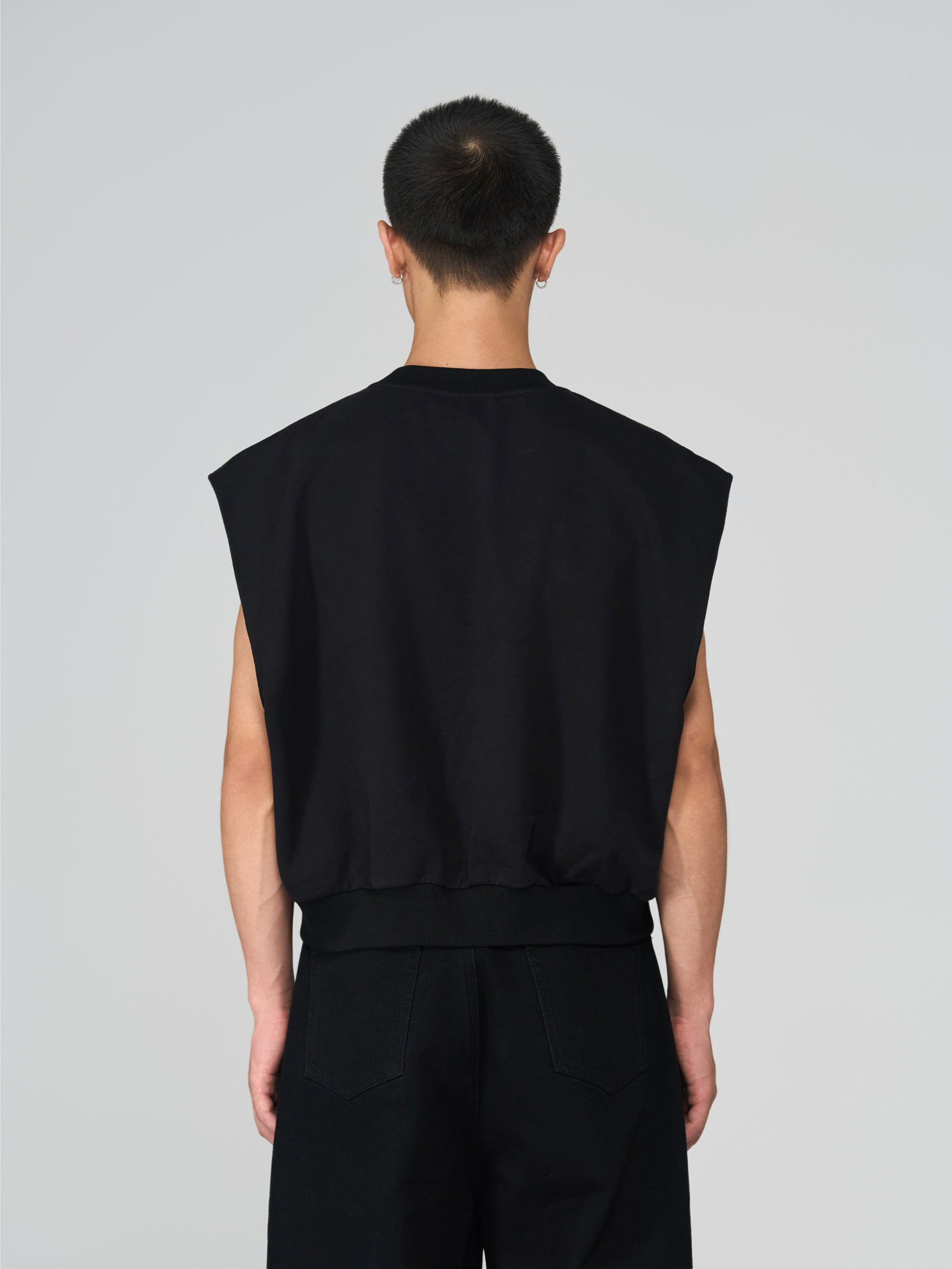 This black cropped tank top is cut from heavyweight cotton for a boxy fit. Sleeveless sweatshirt silhouette for effortless layering.