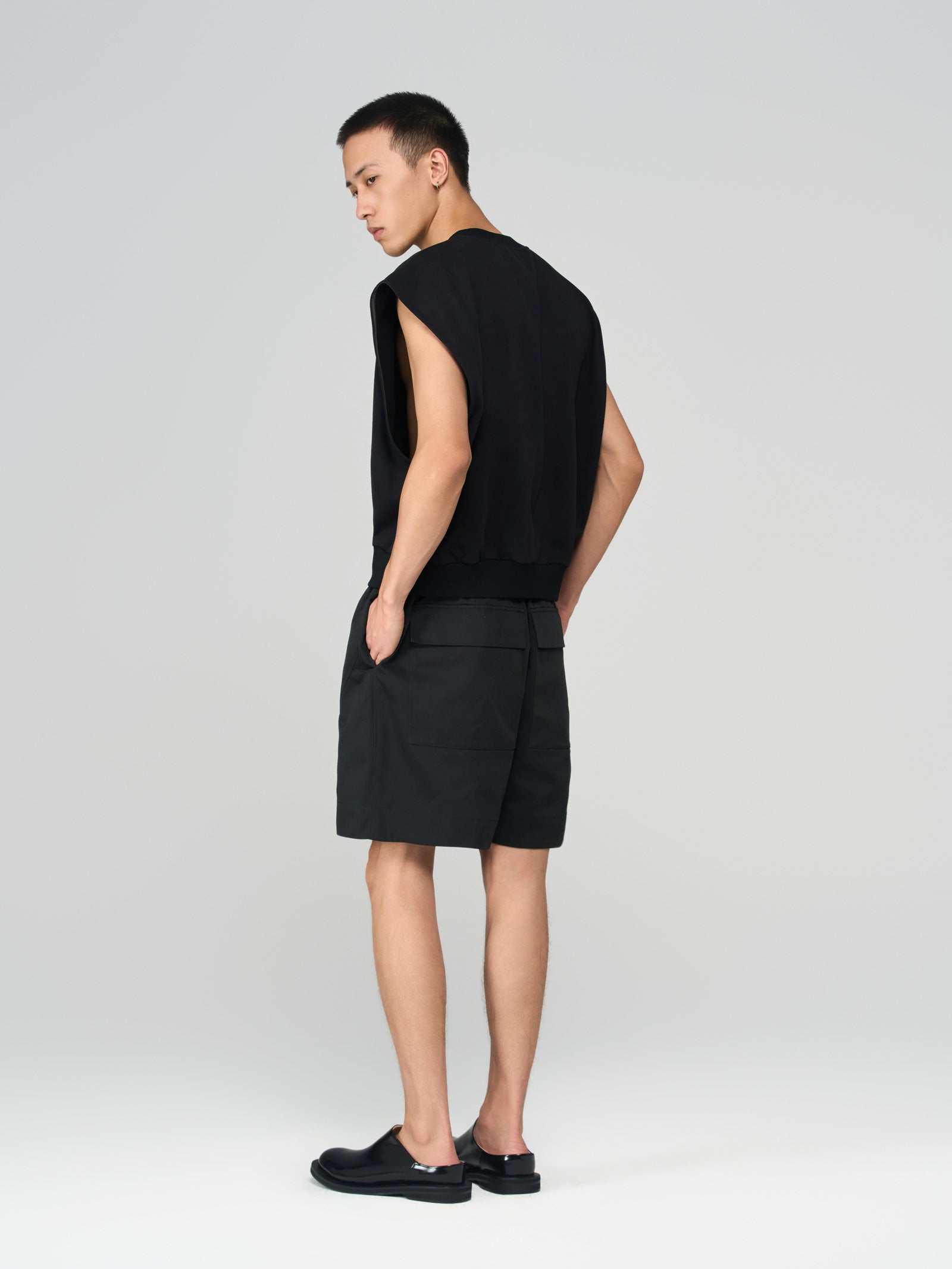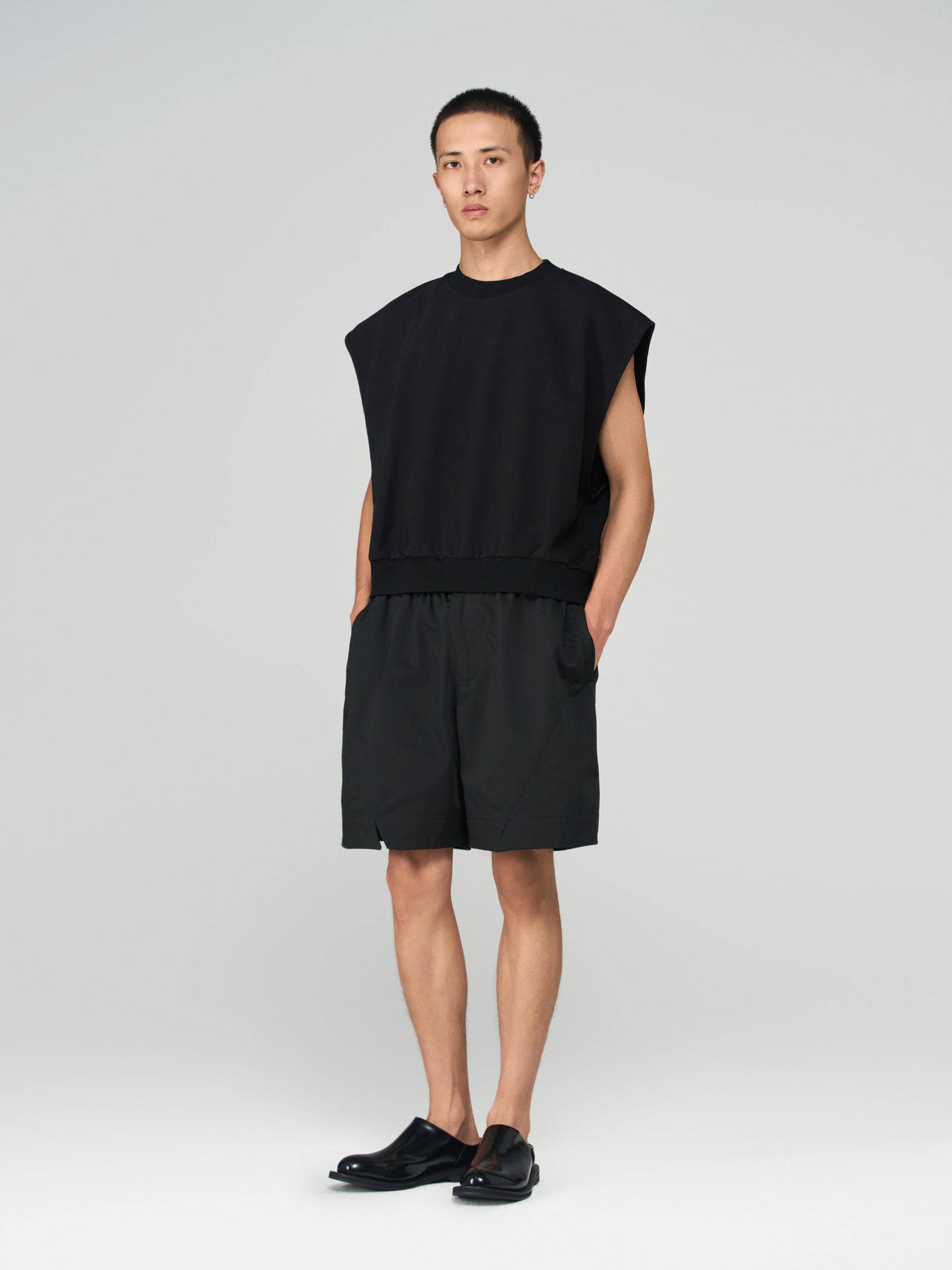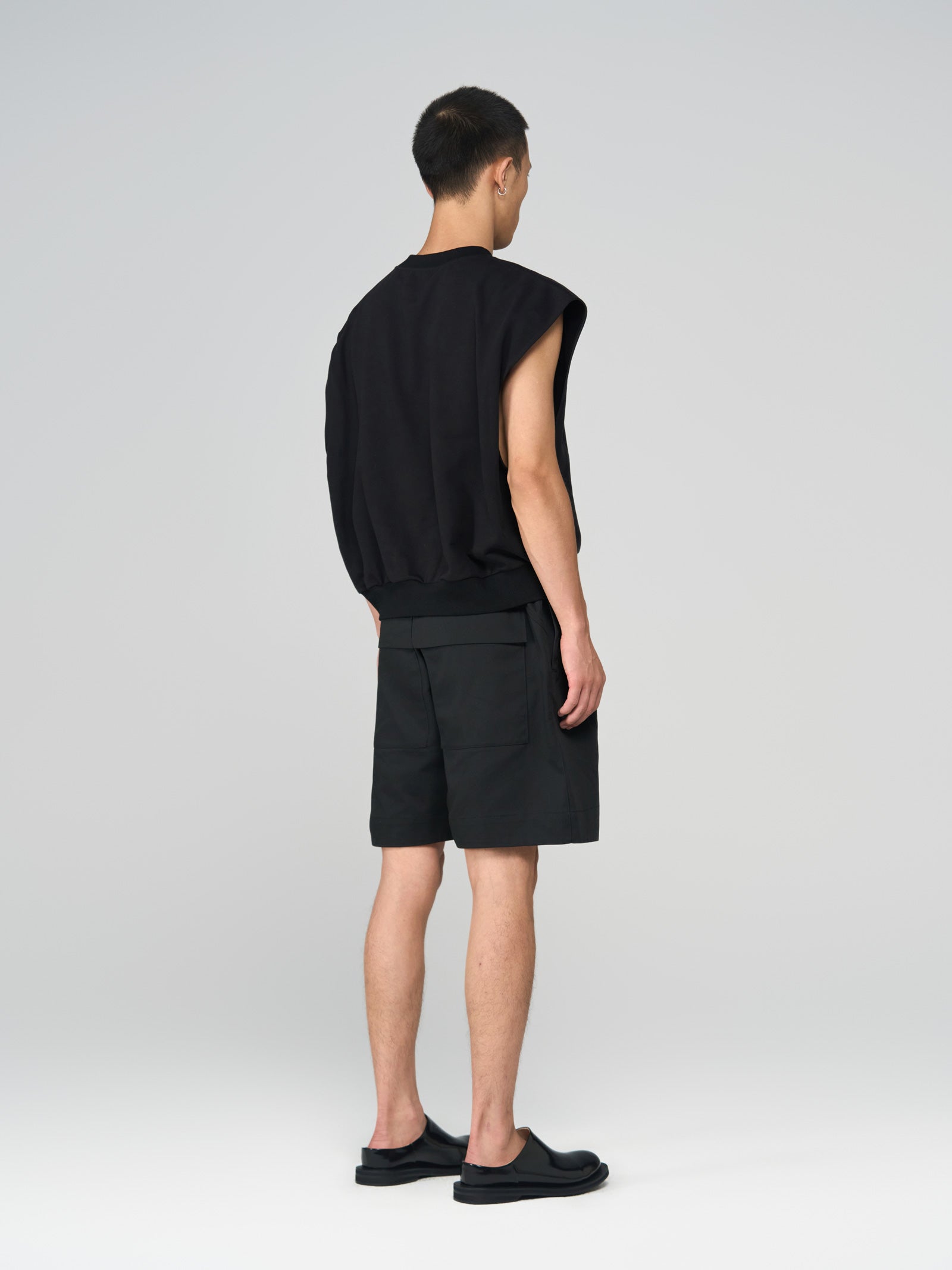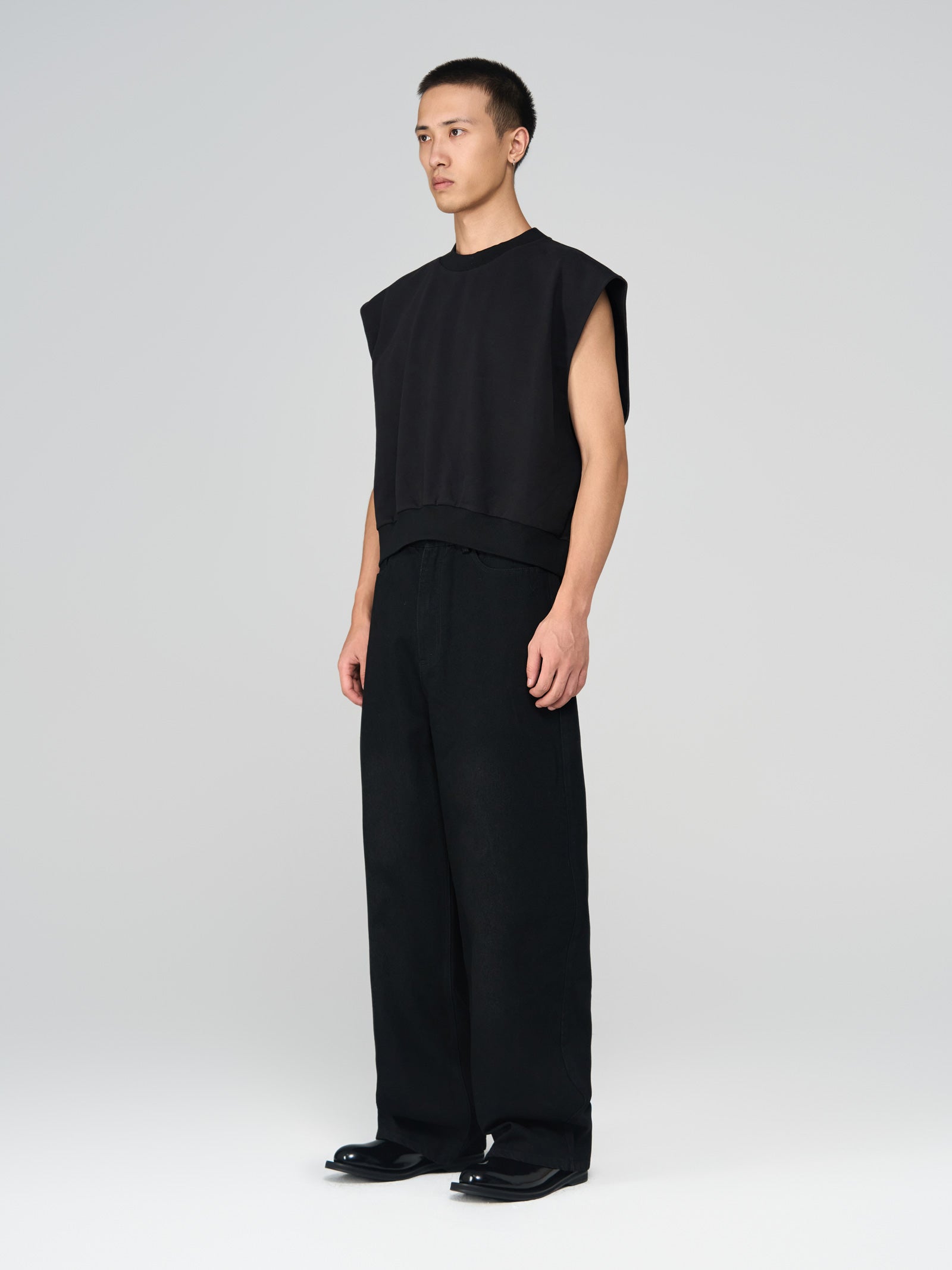 This black cropped tank top is cut from heavyweight cotton for a boxy fit. Sleeveless sweatshirt silhouette for effortless layering.