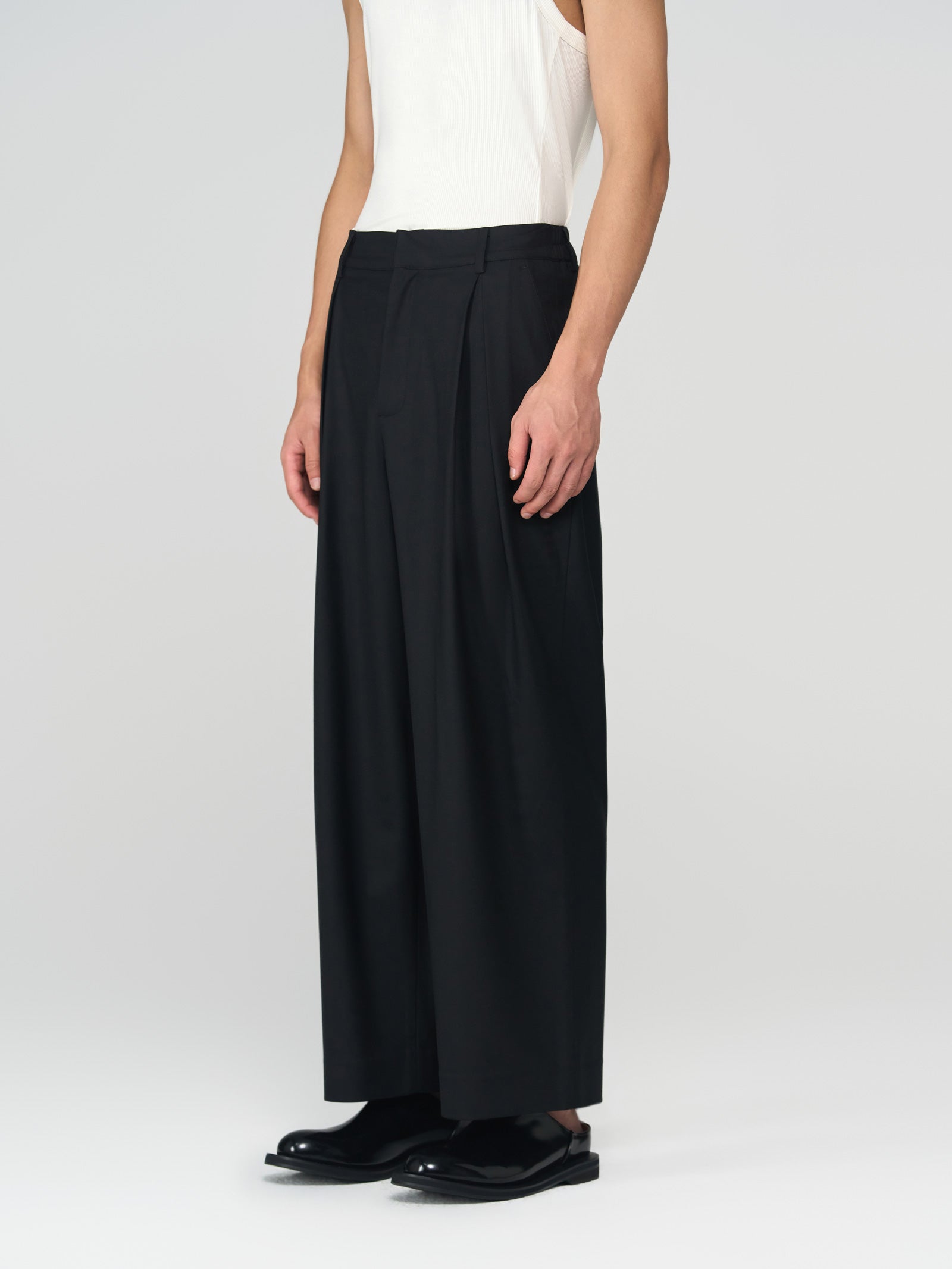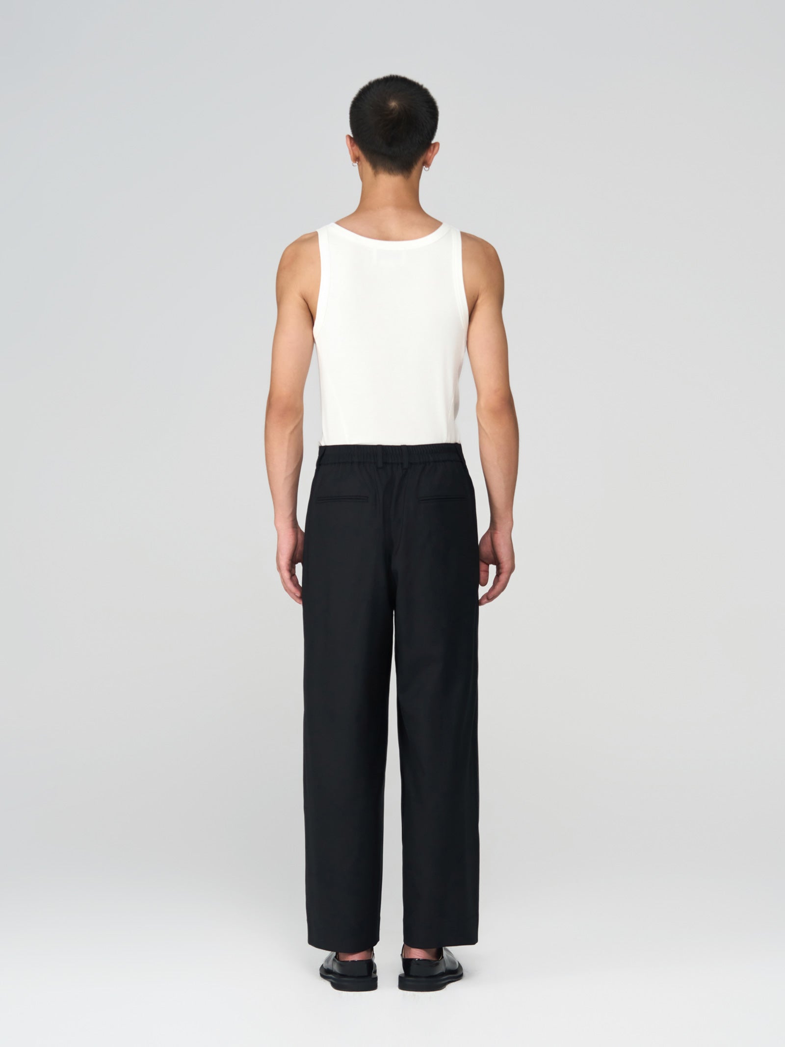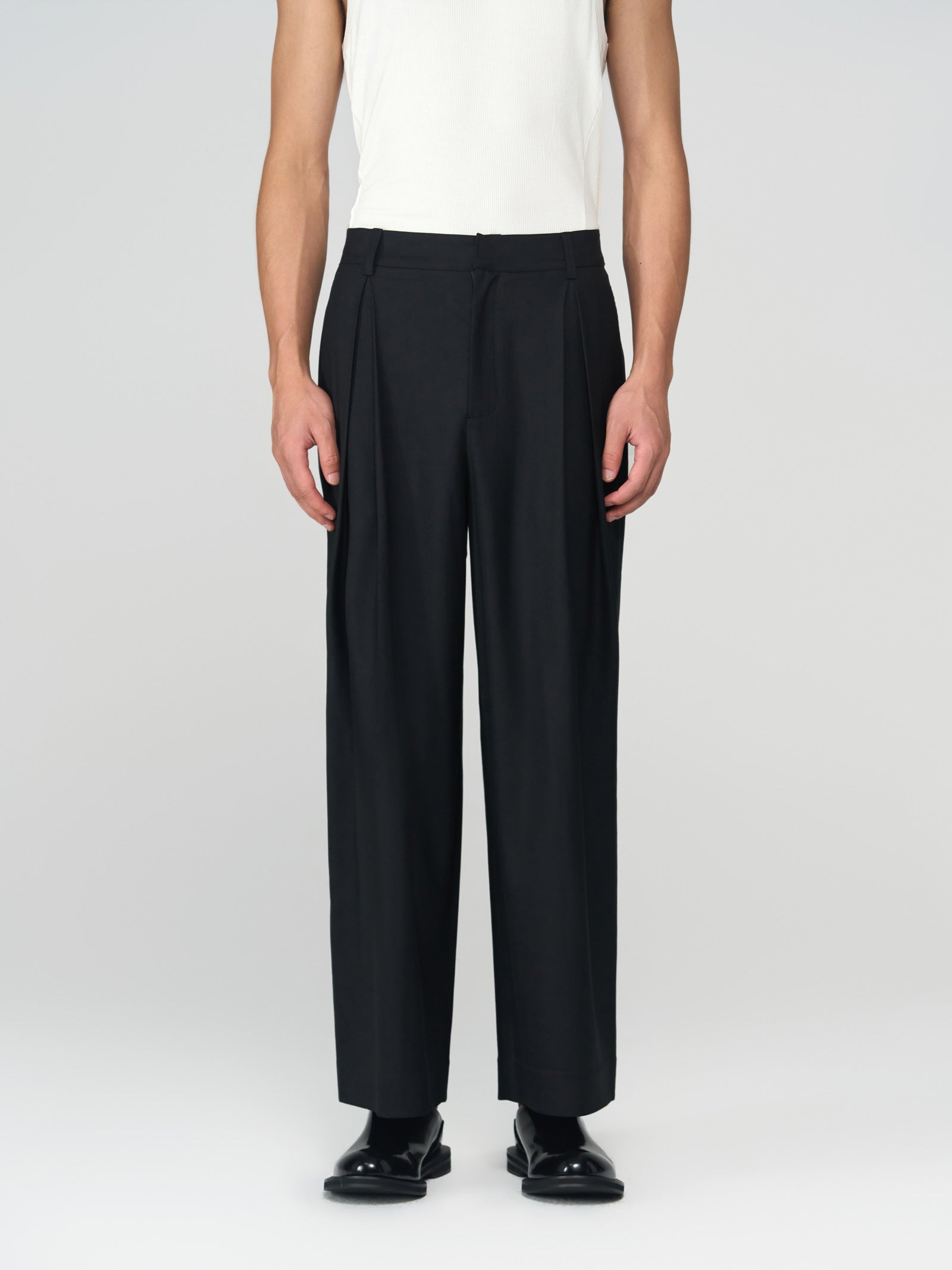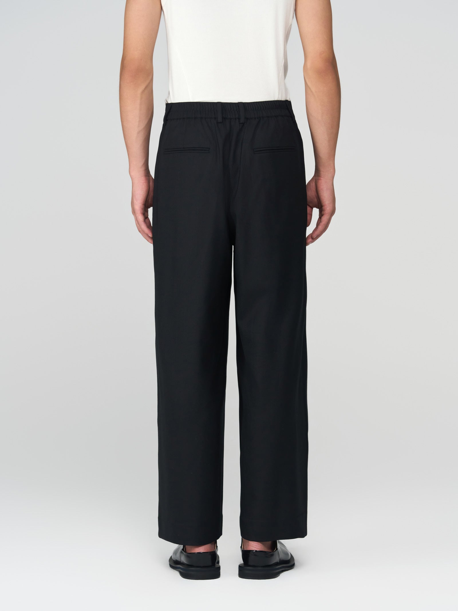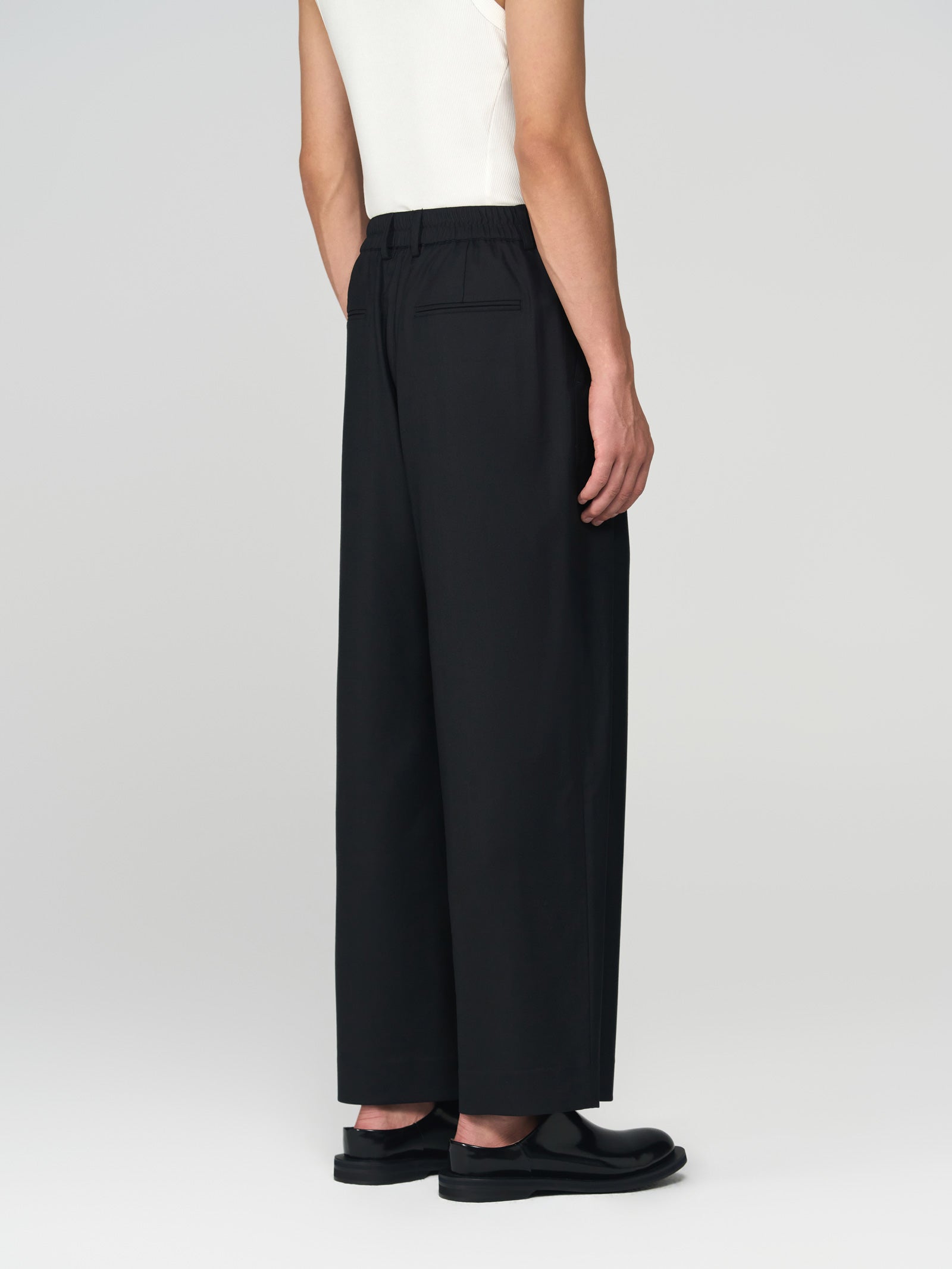 These tailored trousers are crafted from 100% wool, feeling soft on the skin, and cut in a wide-leg and mid-rise profile with inverted pleats along the front to accentuate a softly draped fit that maintains a relaxed and polished appearance. They have an elasticated waistband at back for total comfort and fit.