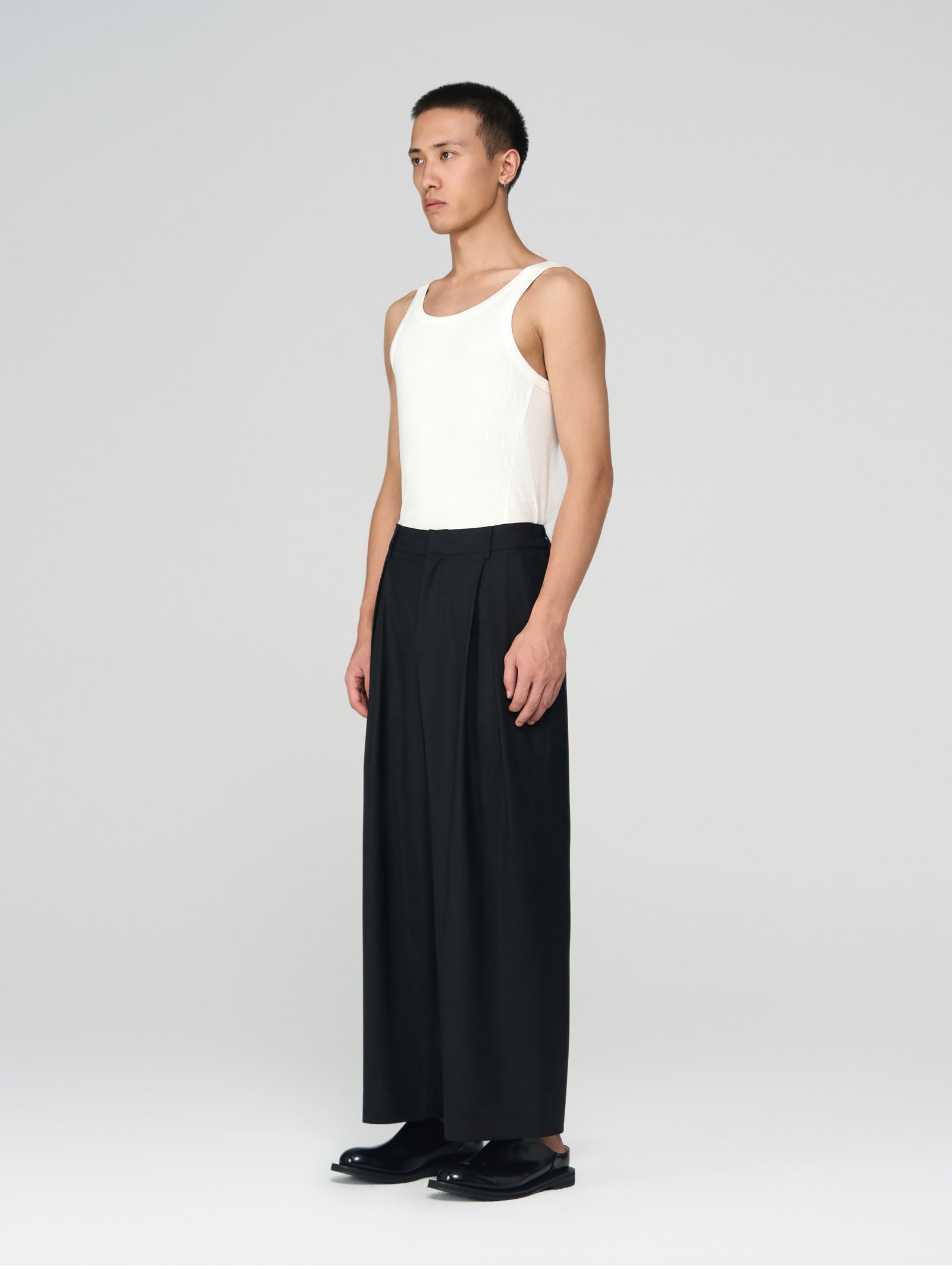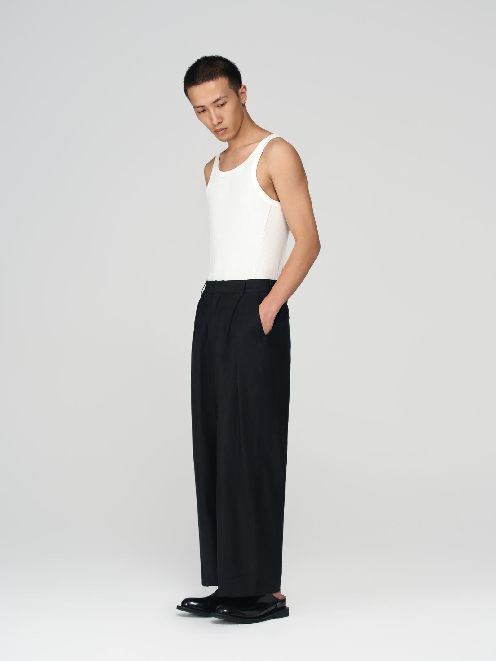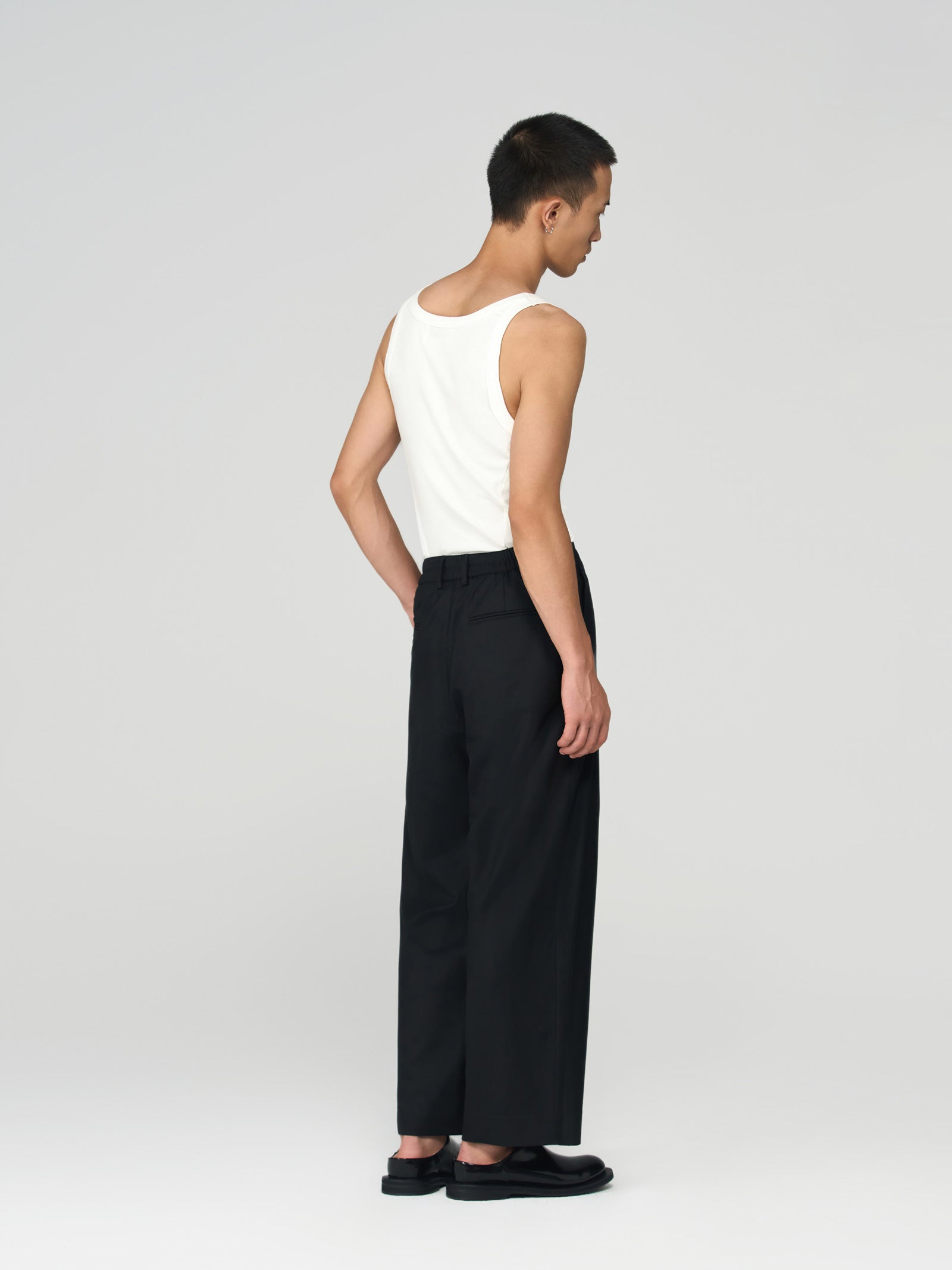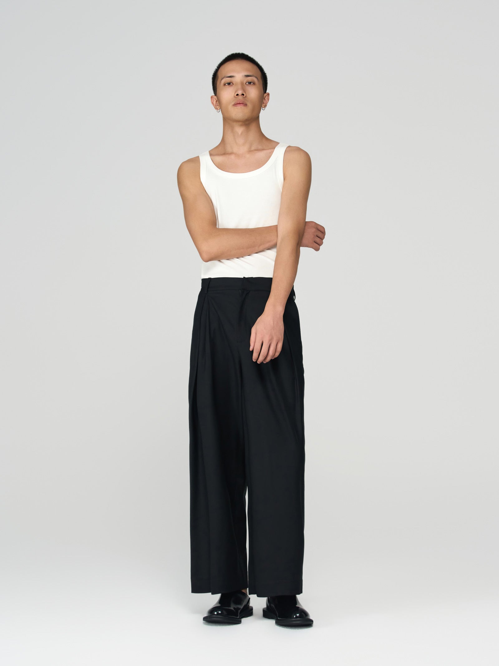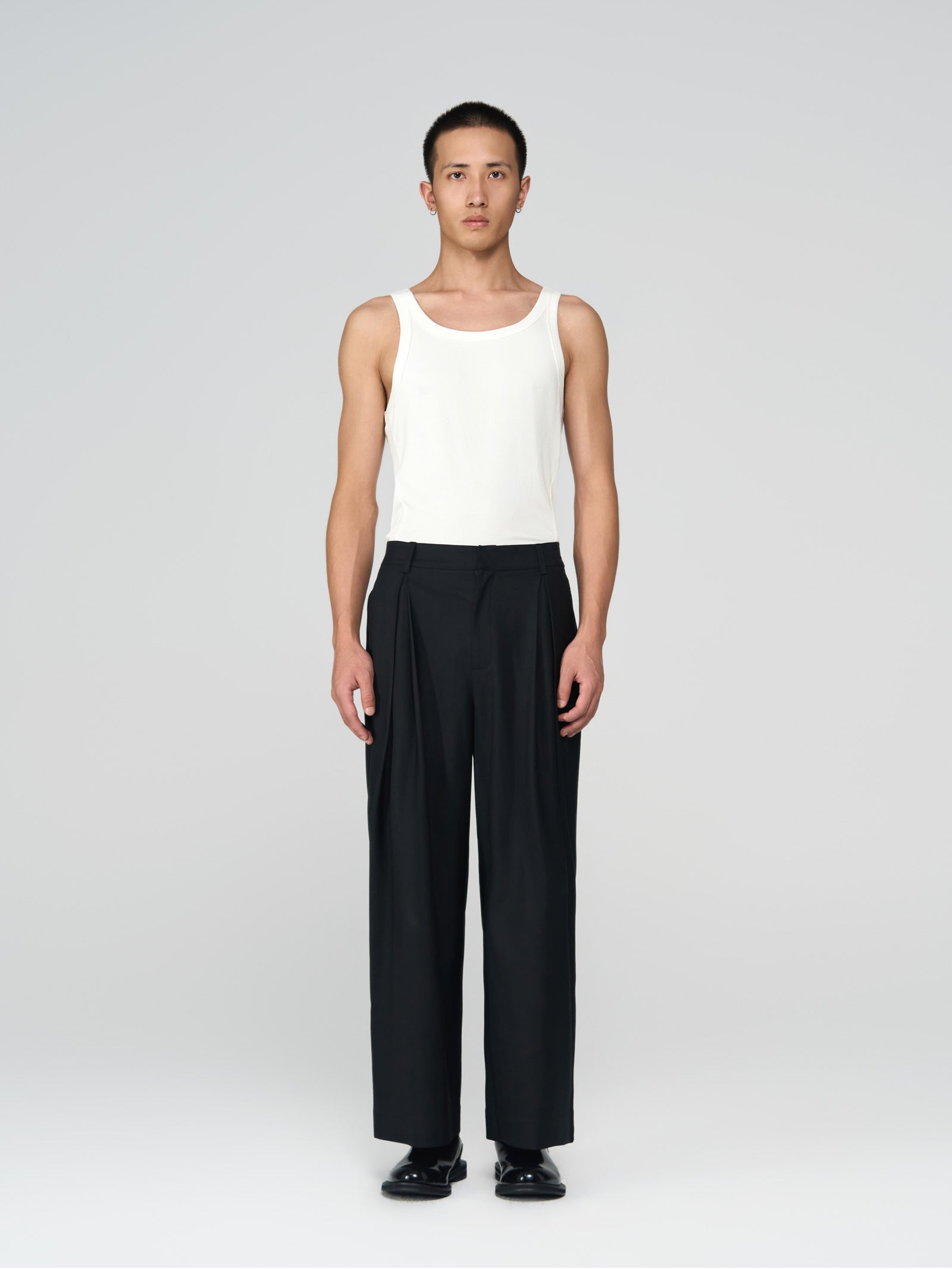 These tailored trousers are crafted from 100% wool, feeling soft on the skin, and cut in a wide-leg and mid-rise profile with inverted pleats along the front to accentuate a softly draped fit that maintains a relaxed and polished appearance. They have an elasticated waistband at back for total comfort and fit.